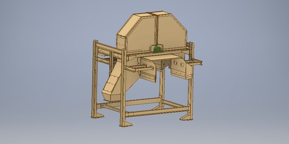 • próbka właściwa wpada do mieszalnika, w którym jest przechowywana aż do momentu odebrania procedury odbioru ( partia węgla – konkretna dostawa, zmiana lub doba). Odbiór próbki jest poprzedzony wcześniejszym wymieszaniem próbki. Układ łopat mieszadła pozwala na przesuwanie próbki w kierunku każdej z klap, co następuje w momencie odbierania próbki.
